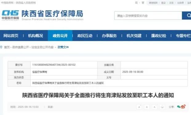 自2025年10月1日起,各统筹区须实现生育津贴线上直接发放给参保女职工本人。