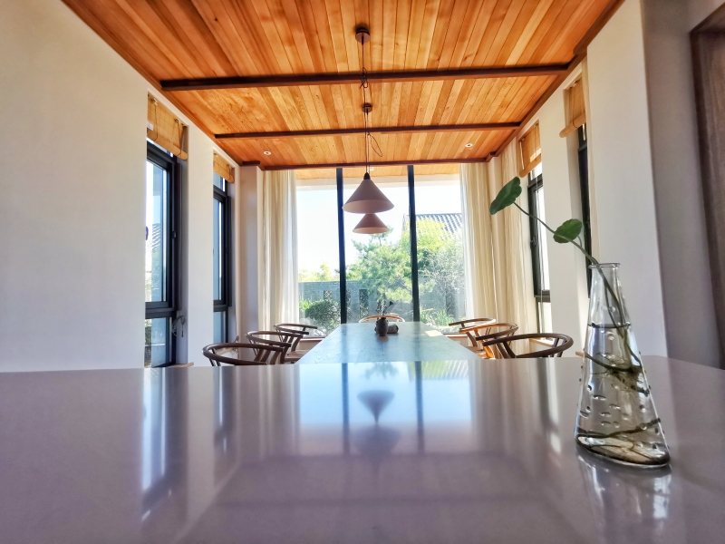 民宿设三个独立院落,配套餐饮、茶吧、书吧、会议室、采摘、养殖等,更好的丰富客人需求及体验。