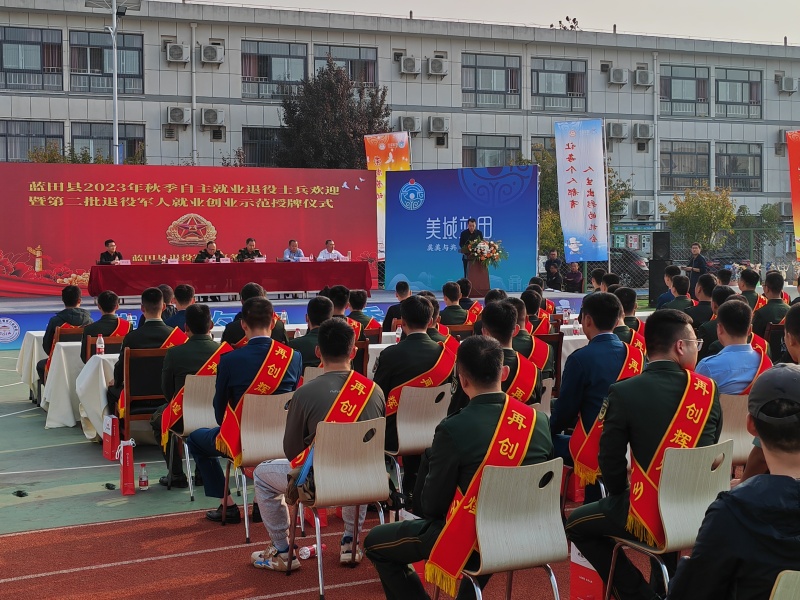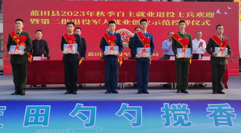 为营造全社会尊崇军人的浓厚氛围,增强退役军人的获得感、幸福感、荣誉感,同时为自主就业返乡新兵在退役后能科学规划人生,技能立足社会,快速就业创业,重新精彩启航,10月10日下午,蓝田县隆重举行2023年秋季自主就业退役士兵欢迎暨第二批(餐饮行业)退役军人就业创业示范授牌仪式。县人民武装部部长李凤杰,县政府党组成员、县人民武装部政委李宇鹏,县退役军人事务局和县人保财险支公司负责人,以及县厨师学校相关负责人出席本次仪式。各镇(街)退役军人服务站站长,2023年秋季退役士兵代表及第二批退役军人就业创业示范共120余人参加。