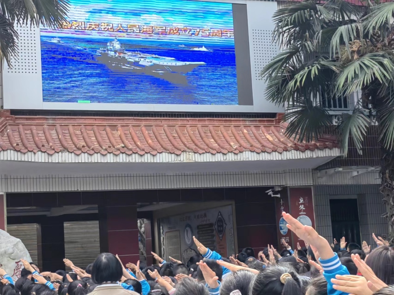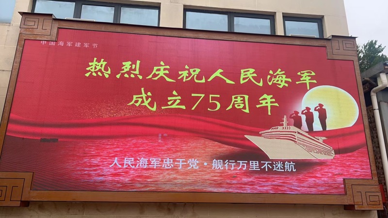同时,县双拥办重点联系县人民武装部、驻蓝各部队、县城管执法局和双拥“十个一”单位积极行动起来,在各单位及县城人员密集的商超区、汽车站周边利用户外LED屏滚动播放庆祝人民海军成立75周年的宣传标语及图片。双拥景区白鹿原影视城在人流密集区利用户外LED屏、景区广播等不间断播放宣传标语和视频;双拥学校县东街小学利用周一升旗活动观看海军远航视频,教育学生热爱祖国、关心国防,从小树立保家卫国远大理想;双拥医院蓝田国康医院利用LED屏滚动播放庆祝标语;双拥影院蓝田太平洋影城在影片播放前首播人民海军成立75周年宣传视频;全县19个镇(街)纷纷利用周一例会对辖区单位、村(社区)进行安排部署,庆祝人民海军生日快乐,积极做好氛围营造工作。