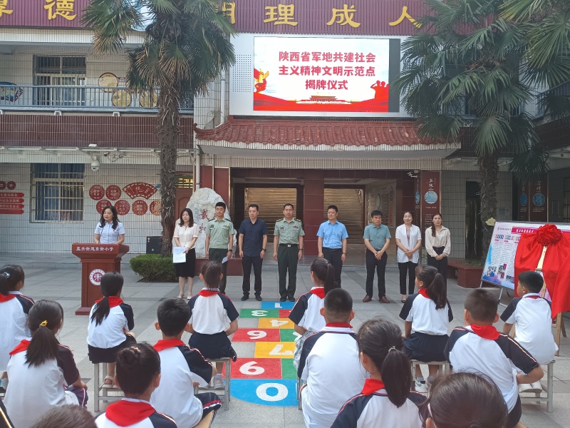 为弘扬光荣传统厚植双拥情怀,准确把握新时代双拥工作要点,落实“双十条”行动,提升我县军地共建社会主义精神文明工作水平,5月28日上午,县双拥办联合县委文明办、县人民武装部、县教科局在东街小学举行揭牌仪式,颁授省委文明办、省双拥办、省军区政治工作局等单位授予东街小学“陕西省军地共建社会主义精神文明示范点”荣誉牌。县政府党组成员、县人民武装部部长李凤杰,县双拥办主任、县退役军人事务局局长刘晓峰,县委宣传部副部长、县委文明办主任乔世伟,县教科局副局长荣利民,武警蓝田中队副中队长宋学志及东街小学200余名师生参加揭牌仪式。