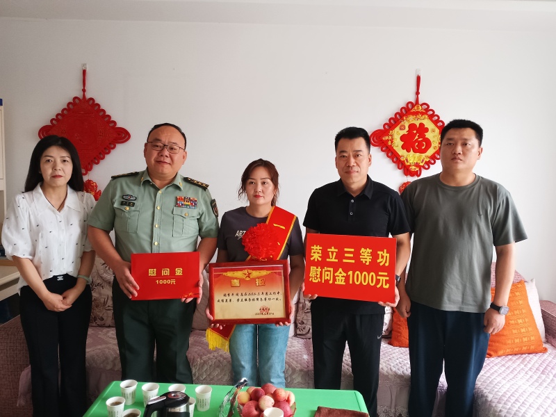 为弘扬拥军优属的光荣传统,充分体现党和政府对现役军人及家属的关心关爱,让军人军属共享尊崇荣光,树立“一人立功、全家光荣”的良好风尚,5月29日上午,蓝田县退役军人事务局联合县人民武装部为荣立三等功现役军人张李平家庭庆送喜报。县委常委、县人民武装部政委李宇鹏参加活动。