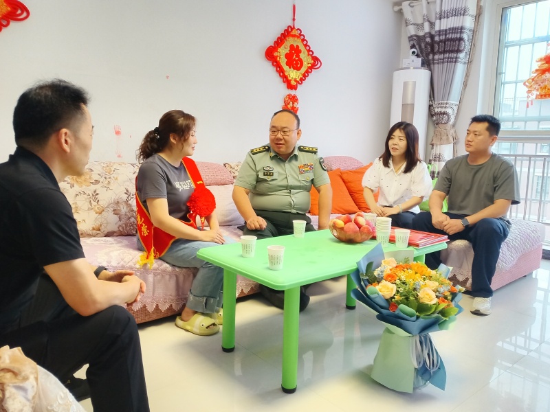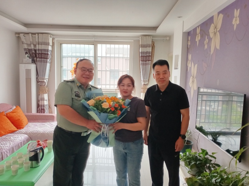 喜报是军人矢志强军、拼搏奋斗的成绩单,庆送喜报则是彰显军人荣誉、尊崇军人军属的具体展现。在天鹅湖社区现役军人张李平家,县委常委、县人民武装部政委李宇鹏为军属送上鲜花,县退役军人事务局负责同志把立功喜报和慰问金送到军属手中,并为军属佩戴红花、绶带。