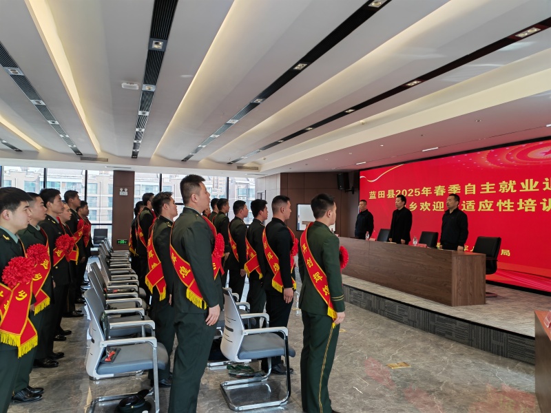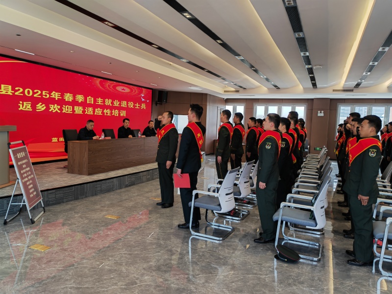 为深入贯彻落实习近平总书记关于退役军人工作重要指示和全国退役军人工作会议精神,营造全社会关心关爱退役军人浓厚氛围,让退役军人成为全社会尊重的人,4月3日,蓝田县举行2025年春季自主就业退役士兵返乡欢迎暨适应性培训。2025年春季全体返乡退役士兵参加。