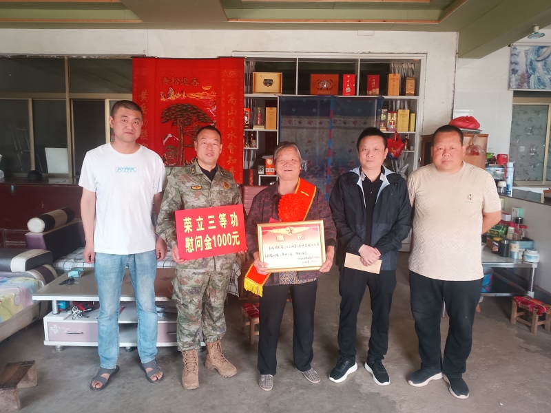 为深入贯彻落实习近平双拥工作重要指示和全国退役军人工作会议精神,围绕“让军人成为全社会尊崇的职业,让退役军人成为全社会尊重的人”工作目标,营造尊崇军人、敬重英雄、热爱部队、关心国防的浓厚氛围,5月6日至9日,县退役军人事务局会同县人民武装部,及相关镇(街)为立功受奖现役军人家庭庆送立功喜报。