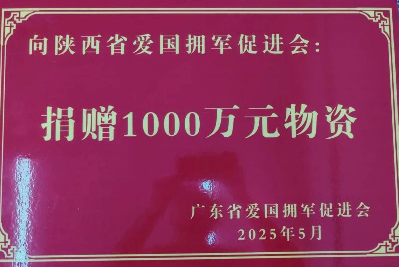 仪式上,广东省爱国拥军促进会向陕西省爱国拥军促进会捐赠了价值1000万元的爱心物资。