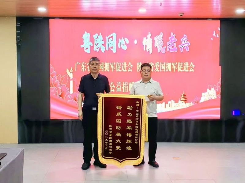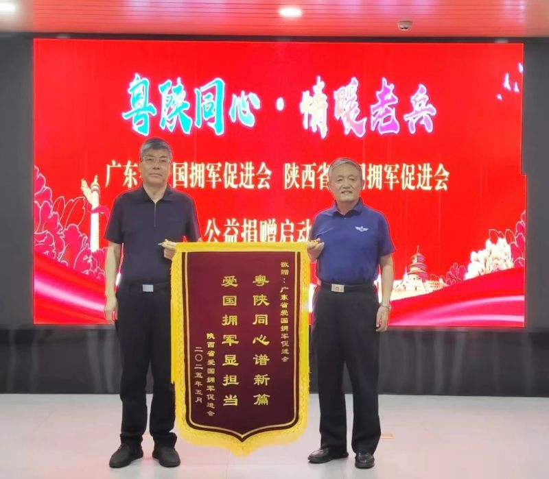 陕西省爱国拥军促进会分别向广东省爱国拥军促进会,广东省爱国拥军促进会副会长单位、中山市万田生活电器有限公司赠送了锦旗以示感谢。