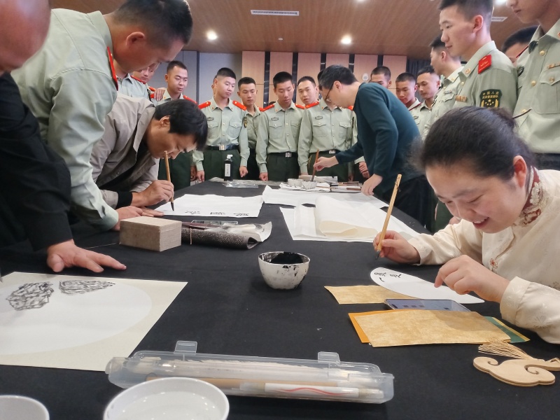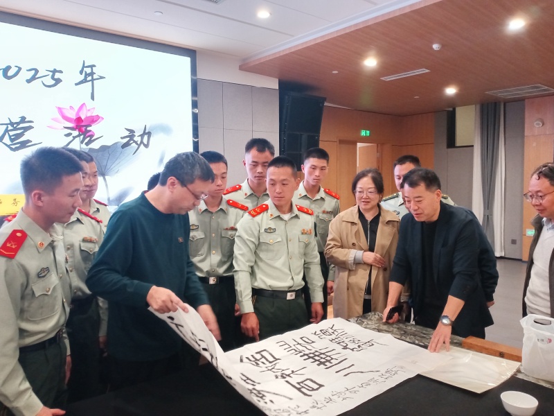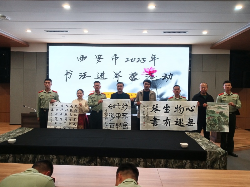 为深入贯彻落实习近平总书记关于双拥工作的重要论述,进一步弘扬双拥光荣传统,以文化浸润人心、以艺术凝聚力量,不断巩固发展坚如磐石的军政军民团结局面,9月23日上午,蓝田县退役军人事务局联合西安市退役军人事务局双拥工作处,邀请西安青年书法家协会四位书画家在蓝田县汤峪镇某武警中队举办“丹青绘双拥,翰墨颂深情”双拥主题书画进军营活动。