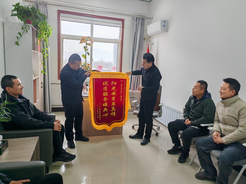 12月3日,2025年转业军士代表怀着诚挚的感恩之心,将一面镌刻着深情谢意的锦旗送到蓝田县退役军人事务局,以最质朴的方式,感谢县退役军人事务局在安置工作中给予的悉心指导、精准帮扶与暖心服务,为他们顺利开启人生新征程筑牢坚实根基。