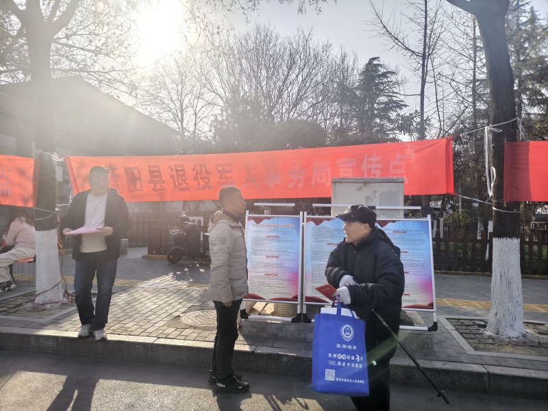 冬日的阳光洒满广场,红色横幅“蓝田县退役军人事务局宣传点”在树影间格外醒目。展板前,工作人员一边为驻足的群众递上宣传手册,一边用通俗的语言解读保障法中的“就业扶持”“抚恤优待”等核心内容;一位拄着拐杖的老人接过宣传策,笑着向工作人员询问农村籍退役军人60岁军龄补贴政策,现场互动暖意融融。