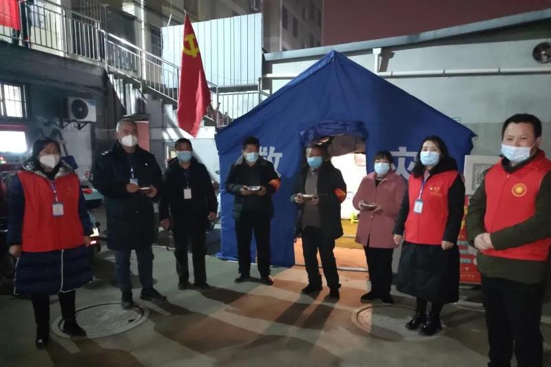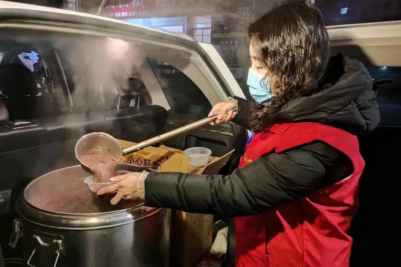 疫情无情,人间有爱,在这数九寒天的冬夜中,总有一些温暖不期而遇。在辖区各小区门口所设置的疫情防控点,寒风中,工作人员仍值守在各自的岗位中,对进出小区的居民进行查验健康码与测温的工作。蓝关社区的工作人员和志愿者们为他们端上了一碗碗精心熬制的爱心粥,感谢他们在疫情防控工作中的无私奉献。突然而至的“温度”,让抗疫工作者们喜出望外,大家喝着热乎乎的腊八粥,纷纷表示粥暖在了身上,甜在了心里。
