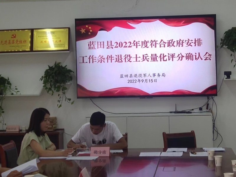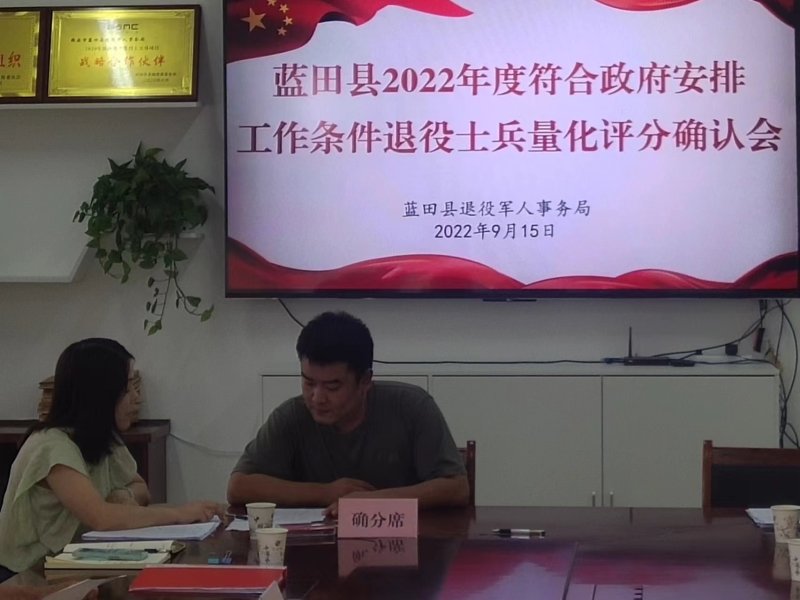 9月15日下午,蓝田县召开2022年度符合政府安排工作条件退役士兵量化评分确认会,会议由县退役军人事务局党组成员、副局长、县退役军人服务中心主任胡先锋主持,并邀请县纪委监委派驻第五纪检监察组组长任新蓉和陕西省退役军人工作社会监督员全程参与。