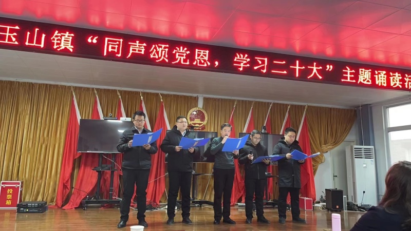 学习宣传贯彻党的二十大是当前和今后一个时期全党全国的首要政治任务。为引导我镇干部原原本本、逐字逐句阅读学习党的二十大报告和《中国共产党章程》,让新思想往深里走、往实里走、往心里走,在全镇干部间兴起阅读学习党的二十大热潮,1月13日我镇组织开展本次“同声颂党恩,学习二十大”主题诵读活动。
