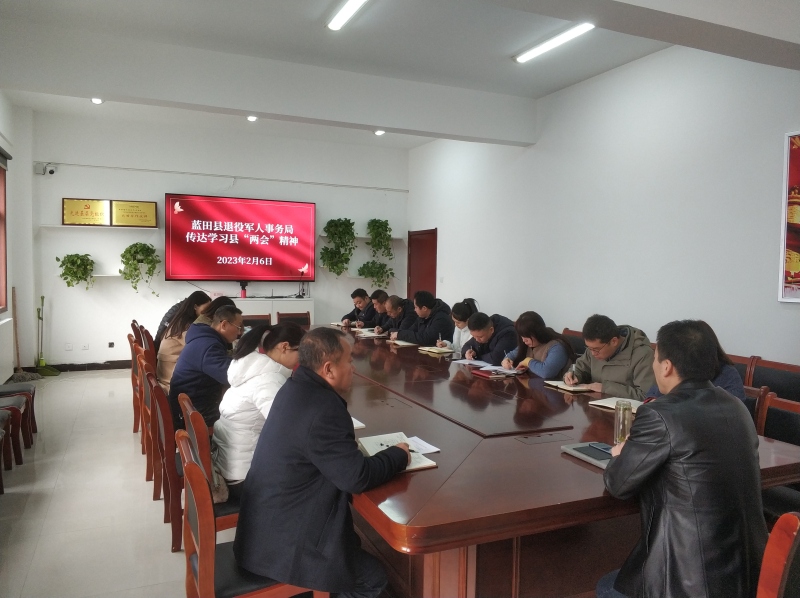 2月6日上午,蓝田县退役军人事务局召开机关和下属单位全体干部会议,认真传达学习蓝田县第十九届人民代表大会第二次会议和政协蓝田县第十四届委员会第二次会议精神。
