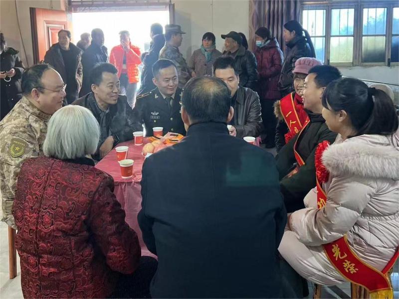在李鹏飞家中座谈时,部队同志简要介绍了他在该部服役期间的工作表现和立功情况。县人民武装部政委指出,军人有保家卫国的神圣使命,地方有拥军优属的工作职责,县人民武装部会积极发挥统筹协调作用,全力帮助现役军人照顾好“后方”。县退役军人事务局局长表示,县双拥办、县退役军人事务局是拥军优属政策的主要贯彻落实机构,一定会积极履行自身职责,确保相关政策落实到位。普化镇党委书记表示,镇党委、政府将发挥属地工作优势,随时了解和掌握军属家庭情况,积极帮助解决实际问题。