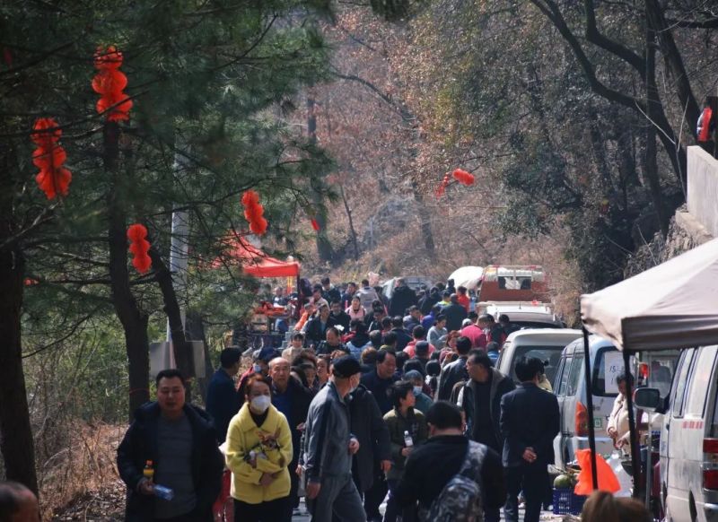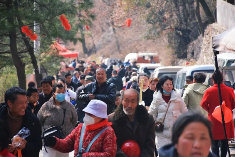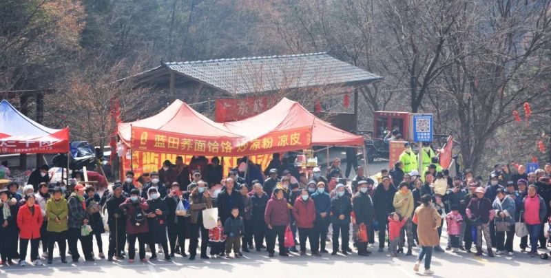 熙熙攘攘的人群,大家开心的笑脸都在诉说着春日“赶会”的喜悦。当锣鼓声响起,欢快的秧歌扭起来,大家也被这份热情感染了,或开怀大笑、或参与其中,带着家人或约三五好友,大家一起登山祈福,欣赏辋川溶洞的美景。