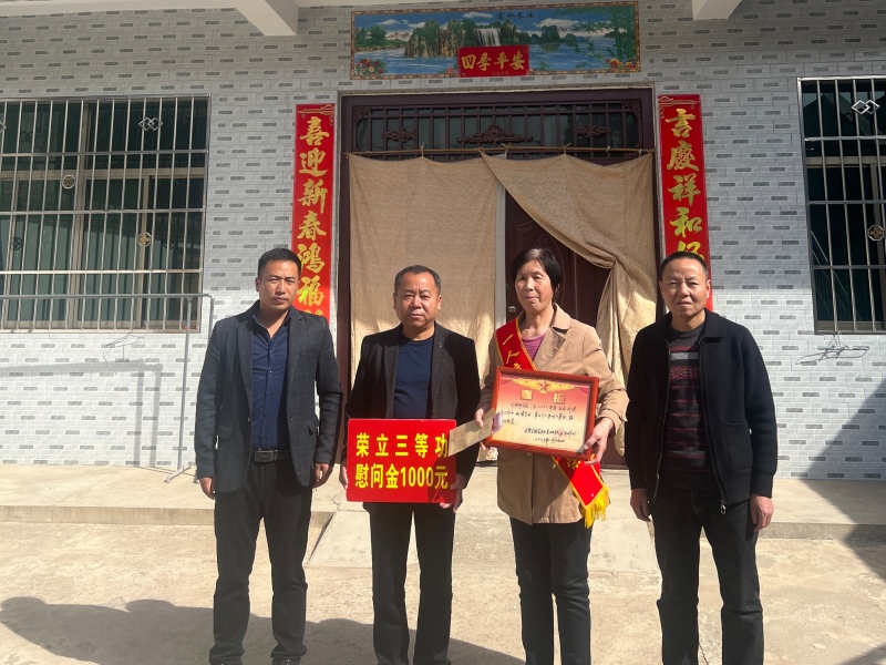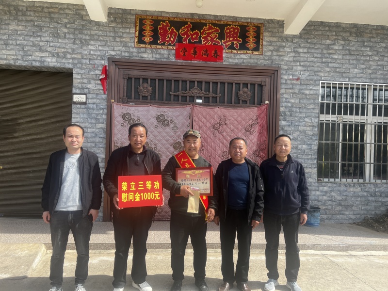 一张军功喜报,不仅是军人荣誉的象征和成长进步的见证,还承载着每位军属的期盼和慰藉,更彰显了军人在部队建功立业、报效祖国的豪迈情怀。近日,蓝田县退役军人事务局组织相关镇(街)退役军人服务站为全县10名荣立三等功的现役军人家庭送去喜报及慰问金,为家属们佩戴绶带,让他们真切感受到党和政府的关怀和温暖。