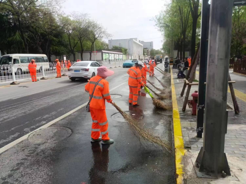 开展大冲洗大清扫活动。为改善空气环境质量,应对近期沙尘天气,督促辖区两家保洁公司按照“白天湿扫,夜间降尘”工作模式,加大道路机械化清扫力度,最大限度降低道路扬尘。
