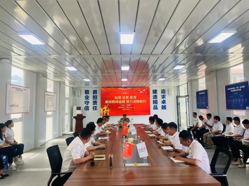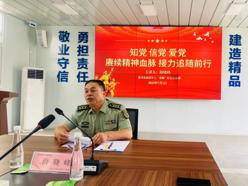 喜迎建党102周年,在全社会各行各业宣讲党的光辉历史和革命历程,做知党、信党、爱党的合格共产党人。7月1日上午,蓝田县退役军人“戎耀”红色宣讲团在陕西华山建设集团有限公司作“赓续精神血脉,接力追随前行”主题宣讲。企业员工代表共50余人参加。