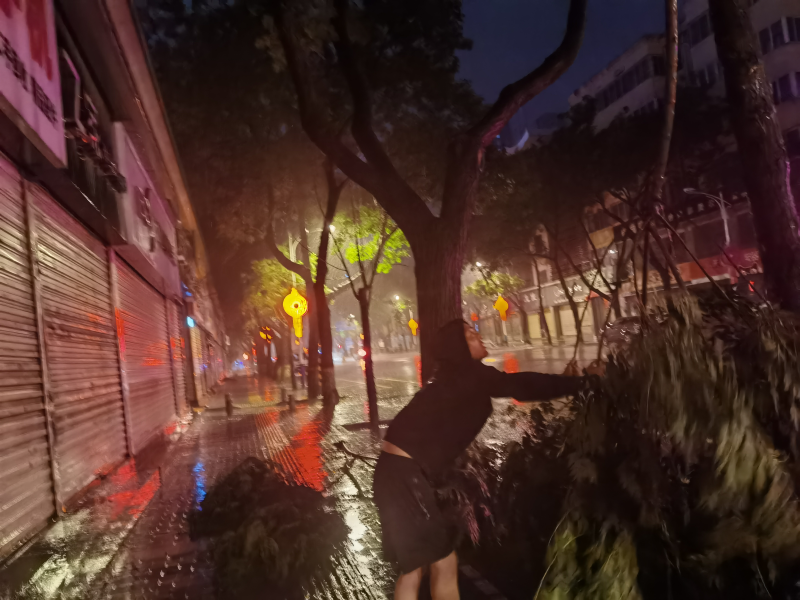 蓝田县城管执法局绿化队对县城区各路段树木倾斜、断枝现象进行排查,发现县门街、北环路等路段七叶树、栾树有断枝现象,在强风暴雨中他们将断枝拖移到人行道,确保城区道路车辆安全通行。