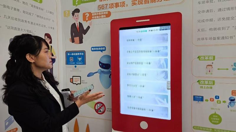 图为沈阳市营商局工作人员在展示“高效办成一件事”的具体场景。 新华社记者于也童 摄