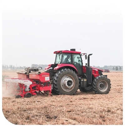 | 在赵岗镇永业家庭农场,农机手驾驶气吸式精量播种机播种玉米。杨恒战摄(人民视觉) |