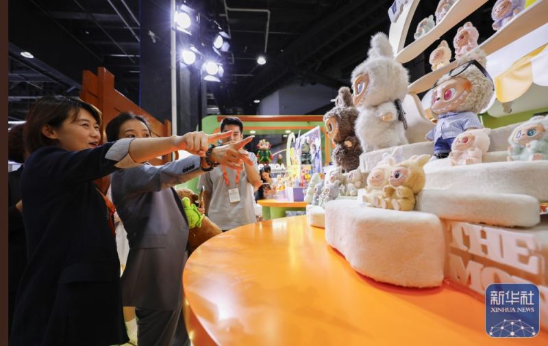 9月10日,观众在服贸会主题展区泡泡玛特展台前参观。新华社记者 常能嘉 摄