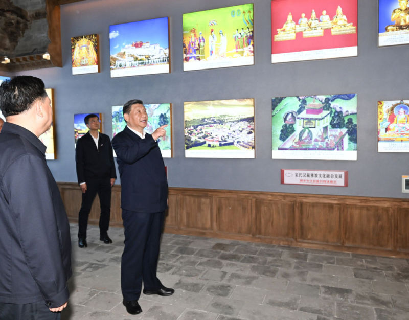 6月18日至19日,中共中央总书记、国家主席、中央军委主席习近平在青海考察。这是18日下午,习近平在位于西宁市城中区的宏觉寺考察。 新华社记者 谢环驰 摄