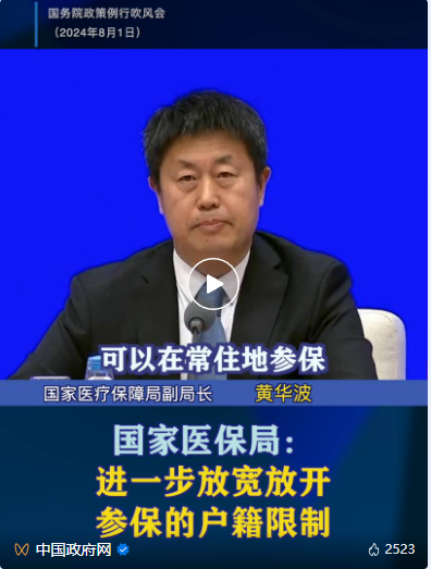 放宽户籍的限制可以让异地就业、异地务工、异地居住和上学的群众和孩子们更好就地参保,从而更好就地就近就医购药时方便医保报销。