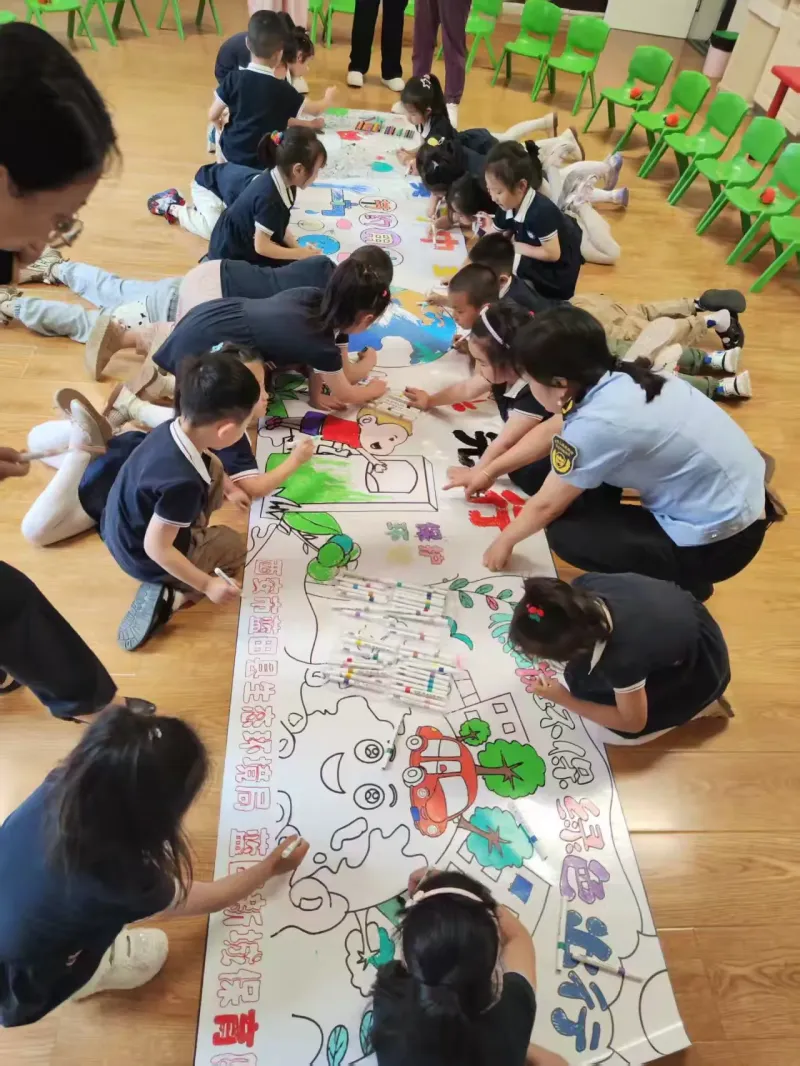 课后,与小朋友们一起制作环保手工画及环保宣传画卷涂色。孩子们发挥创意,在长卷上描绘出地球、树木等环保主题色彩,现场充满欢乐的氛围。