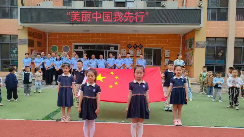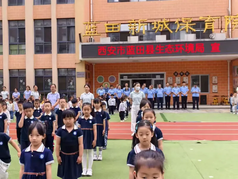 活动开始,蓝田县生态环境局工作人员及蓝田新城保育院的全体师生齐聚操场,参加了庄重的升旗仪式。