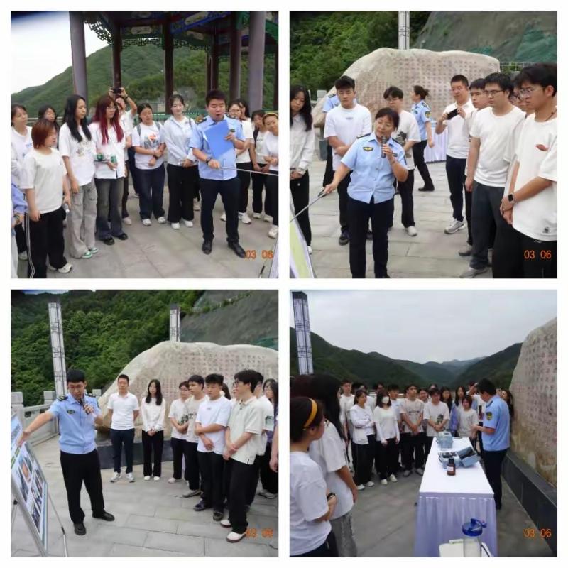 启动仪式结束后,在水库大坝观景台上,李家河环保站工作人员热情地为西安科技大学的师生们讲解李家河水源地保护区的划分情况、保护区监测断面设置,以及水源环境监管工作的重点与难点。现场还展示了水质监测中常用的便携式仪器,细致讲解了仪器的使用方法及各项监测指标的意义,学生们纷纷围拢过来,好奇地观察、提问,现场互动氛围热烈。