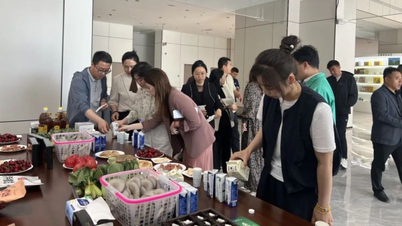 活动现场,蓝田玉雕、荞麦饸饹、樱桃、普罗旺斯西红柿、小羊倌羊乳制品、手抓饼、烤肠等本土特色产品集中亮相,相关企业负责人现场向与会嘉宾进行展示推介,吸引了众多嘉宾驻足品鉴。其中,蓝田樱桃借鲜甜多汁的口感赢得一致赞誉,小羊倌系列奶制品以其高品质和独特风味成为焦点,多家电商平台现场表达了深度合作意向。