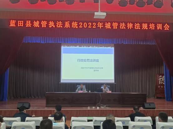 为了进一步提高城市管理系统干部职工的法律法规意识,提高城市管理水平,做到严格规范公正文明执法,9月30日下午,蓝田县城管执法局在图书馆召开2022年城管法律法规培训会,局领导、执法队员(协管)、系统干部职工参加。邀请市城管局政策法规处一级主任科员、公职律师曲秀峰老师授课,曲老师围绕《中华人民共和国行政处罚法》修订的背景、处罚的定义和种类、行政处罚的管辖、适用、程序等讲述了新修订的《中华人民共和国行政处罚法》的各项规定,结合执法中常见的乱倒建筑垃圾、油烟污染等案例,为我们上了一堂生动的法制培训课。通过培训,进一步提高了执法人员的业务能力和执法水平,下一步我们将继续加强学习相关法律法规,刻苦钻研业务,做到依法行政、规范执法、文明执法,牢固树立蓝田城管执法队伍良好形象,为全面建设“五有六好五示范”的绿色蓝田幸福家园贡献城管力量,以优异成绩迎接党的二十大胜利召开。