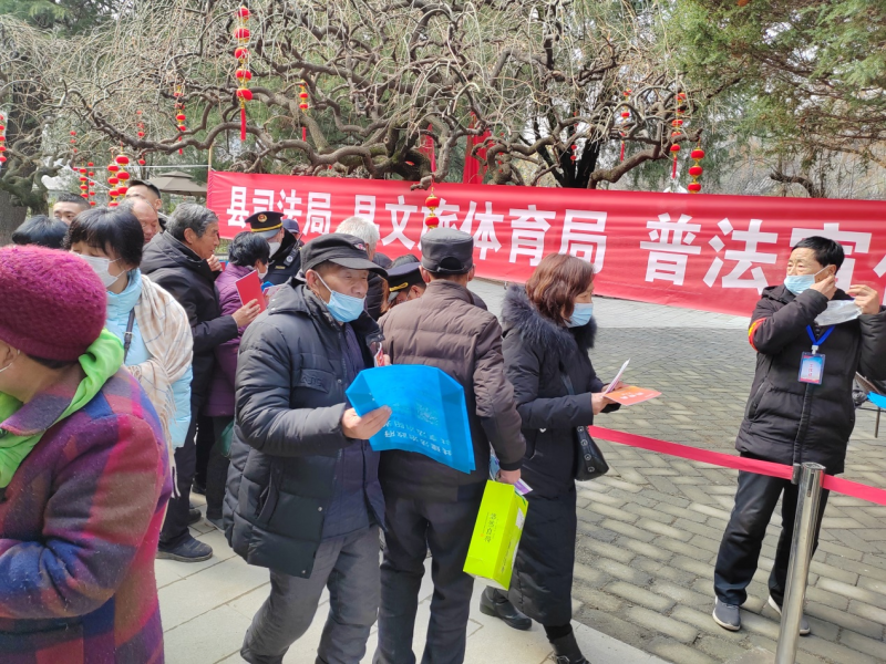 蓝田县水陆庵古庙会农历正月二十三至二十五日期间,蓝田县司法局、县文旅体育局、普化司法所联合到水陆庵开展法治宣传活动,琳琅满目的各色商品、香气扑鼻的特色美食等,吸引着外地及周边众多群众源源不断地前来,充分利用庙会人流量大、文化氛围浓、群众参与度高的机会,让广大群众逛庙会的同时接受法治教育。