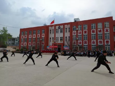 为进一步加强学生法制观念,增强法治意识及安全防范意识,提高青少年自我保护和处理突发事件能力,全面筑牢校园安全防线,创建“法治、和谐、平安校园”,蓝田县公安局巡特警大队以市局党委2023年工作要点“五个五”总体部署为引领,以政治建警“三个三”工程为支撑,以“三下”工程为抓手,精准发力,推动“一攻坚三整治五打击”工作走深走实。2023年3月29日下午,大队联合普化派出所深入普化镇马楼初级中学,开展“公安进校园、展警姿、访师生、共警心”活动。马楼初中副书记栗宏源、副校长吴恒卫、巡特警大队大队长冯小桥、普化派出所所长支卫鹏、大队和派出所民辅警及260余名师生参加了活动。