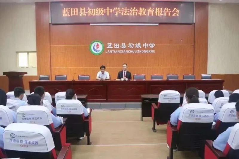 为积极响应我县第五届“关爱明天、普法先行”青少年法治宣传教育活动、有效预防未成年人犯罪,4月24日下午,蓝田法院少年审判庭王军权法官以法治副校长身份前往蓝田县初级中学开展送法进校园活动。
