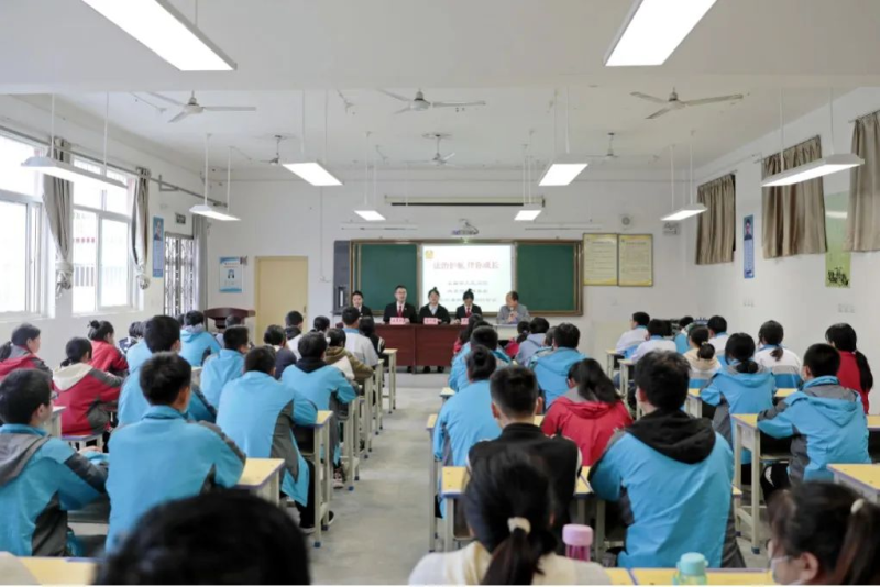 5月9日下午,蓝田法院少年庭法官和最高院第六巡回法庭派驻辋川镇官上村干警走进蓝田县辋川初级中学共同开展法治宣传教育,活动还邀请了团县委青年干部共同参与,进一步丰富了宣传教育内容。