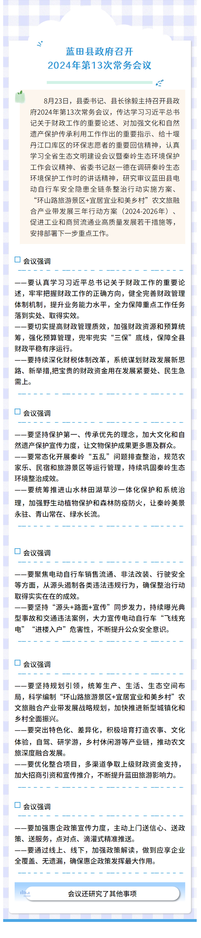 蓝田县政府召开2024年第13次常务会议,会议内容未提及,但以图解形式呈现。