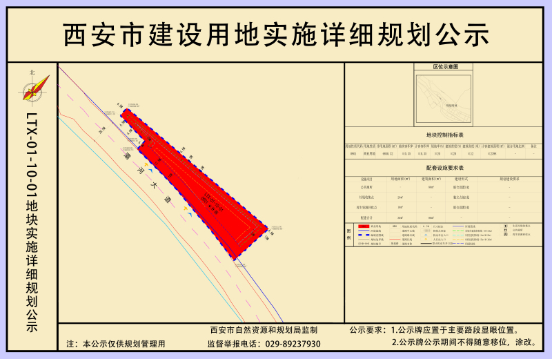 LTX-01-10-01地块位于蓝田县华胥镇,聚贤路西南侧,灞河大道东北侧,净用地面积6853.32平方米。本次实施详细规划确定的主要指标为:规划用地性质为商业用地(代码0901);容积率≤0.35,建筑密度≤20%,绿地率≥20%,建筑限高12米;停车位配建按照《蓝田县建设项目停车位配建标准(试行)》执行。