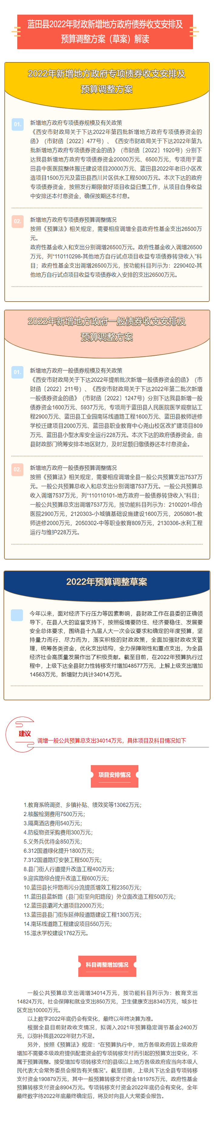 蓝田县2022年财政新增地方政府债券收支安排及预算调整方案(草案)解读