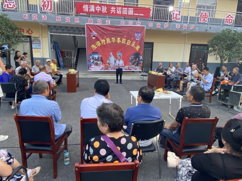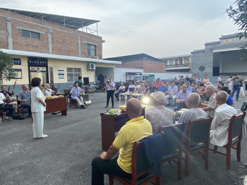 村民们早早地来到场地,满怀期待地等待着活动开始。走进洩湖村新时代文明实践所,首先映入眼帘的是洩湖村自乐班摆放有序的各种弹奏乐器,瞬时唤起大家对活动的期待。洩湖镇人大主席穆玉娥向大家介绍了中秋节的来历与习俗,为群众送去节日的祝福,让大家感受中秋节的深远意义和民俗传统。紧接着演出老师们详细介绍了本次活动的表演曲目,指导大家整齐入座。活动现场气氛愉悦,欢声笑语。