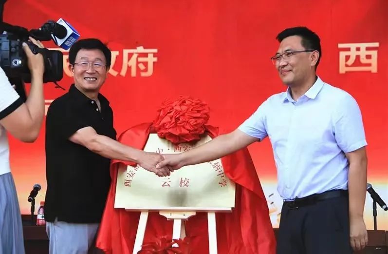 两校现场举行了“云校项目签约仪式”。副县长何勇和西安高新一中副校长刘江涛共同为“云校”揭牌。