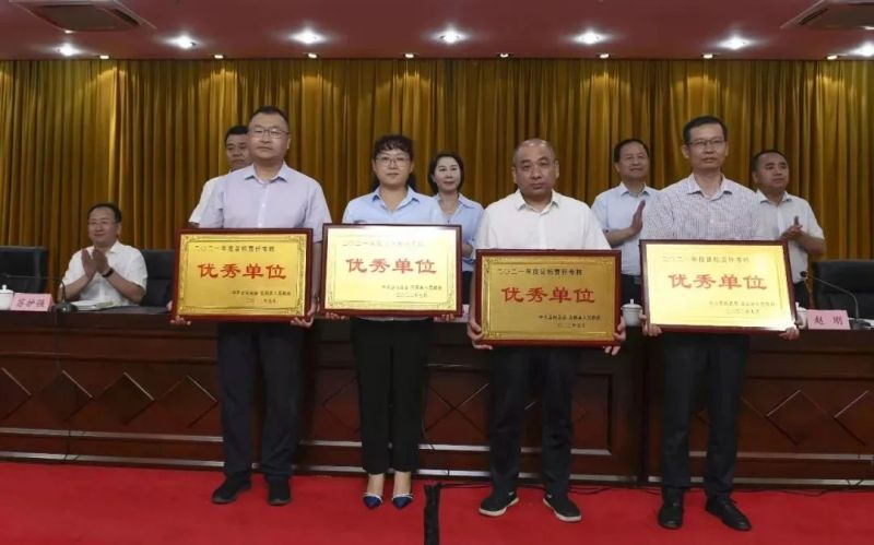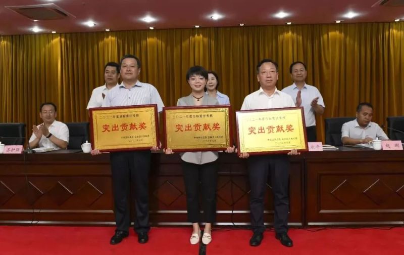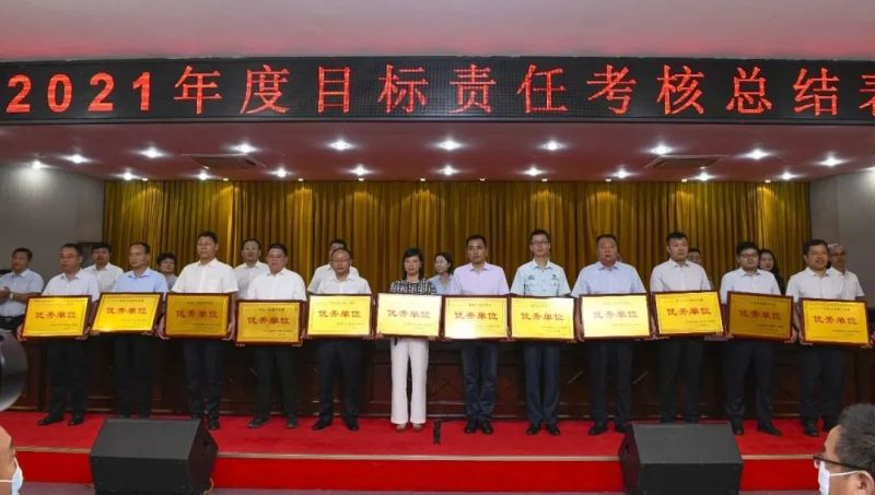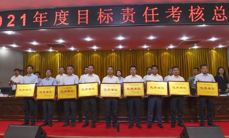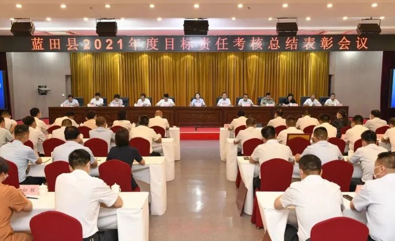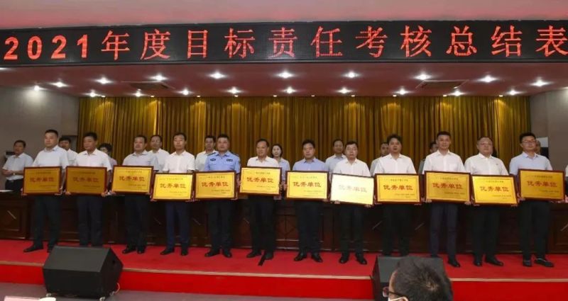 会议通报全县2021年度目标责任考核结果,宣读《中共蓝田县委 蓝田县人民政府关于表彰2021年度全县目标责任考核先进单位的决定》,并现场为优秀单位颁发奖牌。