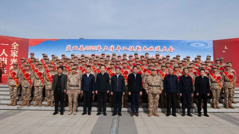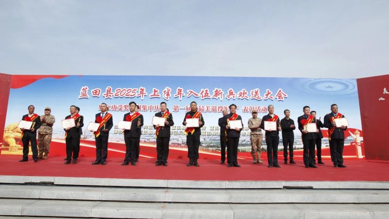 男儿有志挥金戈,火热青春献国防,3月17日,蓝田县在白鹿广场隆重集会,为2025年上半年入伍新兵举行欢送仪式,向立功受奖的现役军人家庭集中庆送喜报、对首届蓝田县“最美退役军人”进行表彰。县委书记徐毅,县政协主席胡新志,县委常委、副县长、县征兵工作领导小组组长苏护强,县委常委、县人民武装部上校政委、县征兵工作领导小组副组长李宇鹏,县人大常委会副主任陈小马,副县长、县公安局局长蔚红德,县人民武装部上校部长李凤杰出席活动。