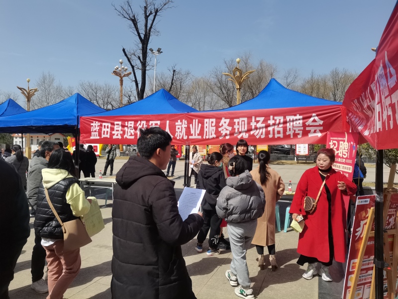 3月7日上午,蓝田县退役军人事务局联合县人社局在天鹅湖广场举办春风行动(第二场)退役军人就业服务专场招聘会。