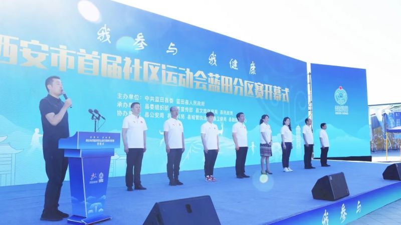 “我参与·我健康”,6月16日,西安市首届社区运动会蓝田分区赛在白鹿广场开赛。来自全县11个社区代表队的240余位运动员代表,西安市体育局副局长邵芳,县委副书记、县长徐毅及王晶、展云飞、龚卫、韩格锋、张均锋等县级领导,各镇街、部门领导参加开幕式,全国青少年国际式摔跤锦标赛冠军、十四运火炬手李文吉应邀出席。