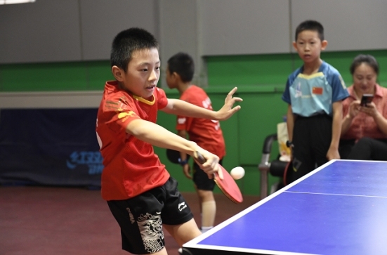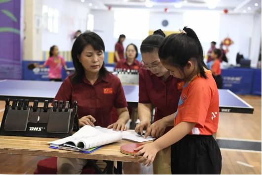 赛场上,小运动员们分组展开较量,个个气势如虹,进攻、防守转换自如,扣球、反拉,你来我往,现场气氛紧张刺激,场边教练员、运动员加油喝彩声不断。