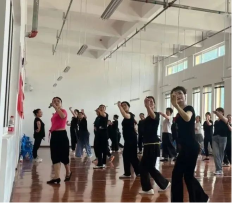 培训过程中,学员们跟着刘娜、王璐老师学习《碗碗腔》、《快乐健身操》等广场舞课程。老师们对舞蹈的动作要领等进行认真细致地讲解,学员们认真学习,刻苦训练,圆满的完成了本次课程内容,并在动作规范和表现力上得到了很大程度的提高。