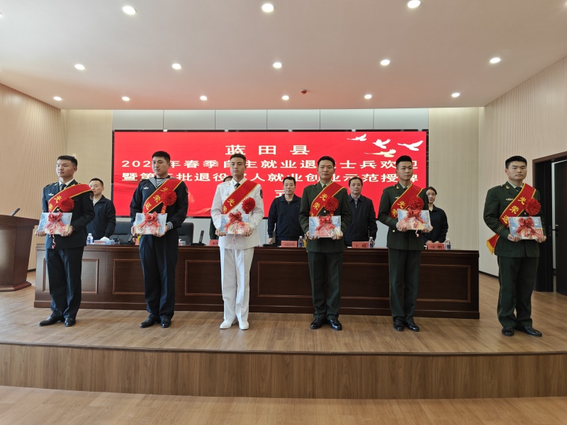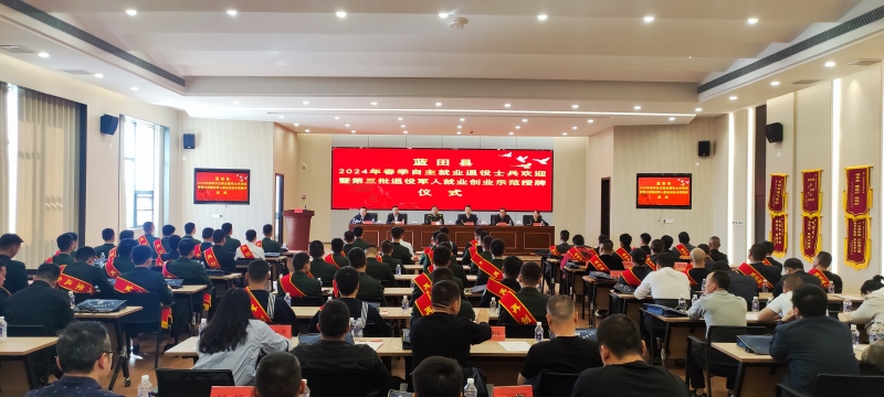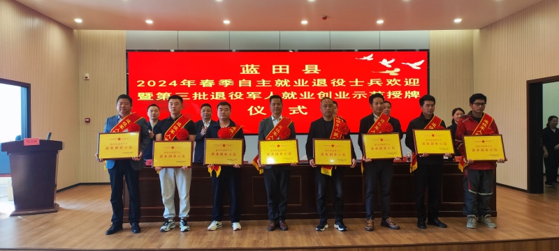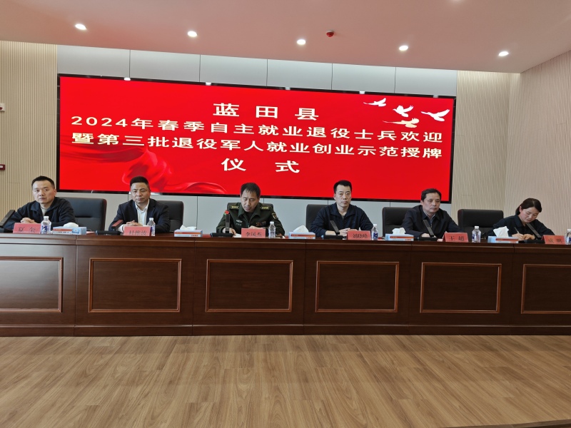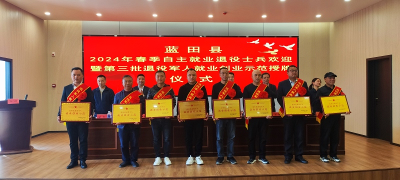 为营造全社会尊崇军人的浓厚氛围,增强退役军人的获得感、幸福感、荣誉感,3月29日下午,蓝田县隆重举行2024年春季自主就业退役士兵欢迎暨第三批退役军人就业创业示范授牌仪式。县政府党组成员、县人民武装部部长李凤杰,县退役军人事务局领导班子成员,县人社局负责同志,蓝田农村商业银行负责同志,各镇(街)分管领导及退役军人服务站站长,2024年春季退役士兵,第三批退役军人就业创业示范,共计100余人参加活动。